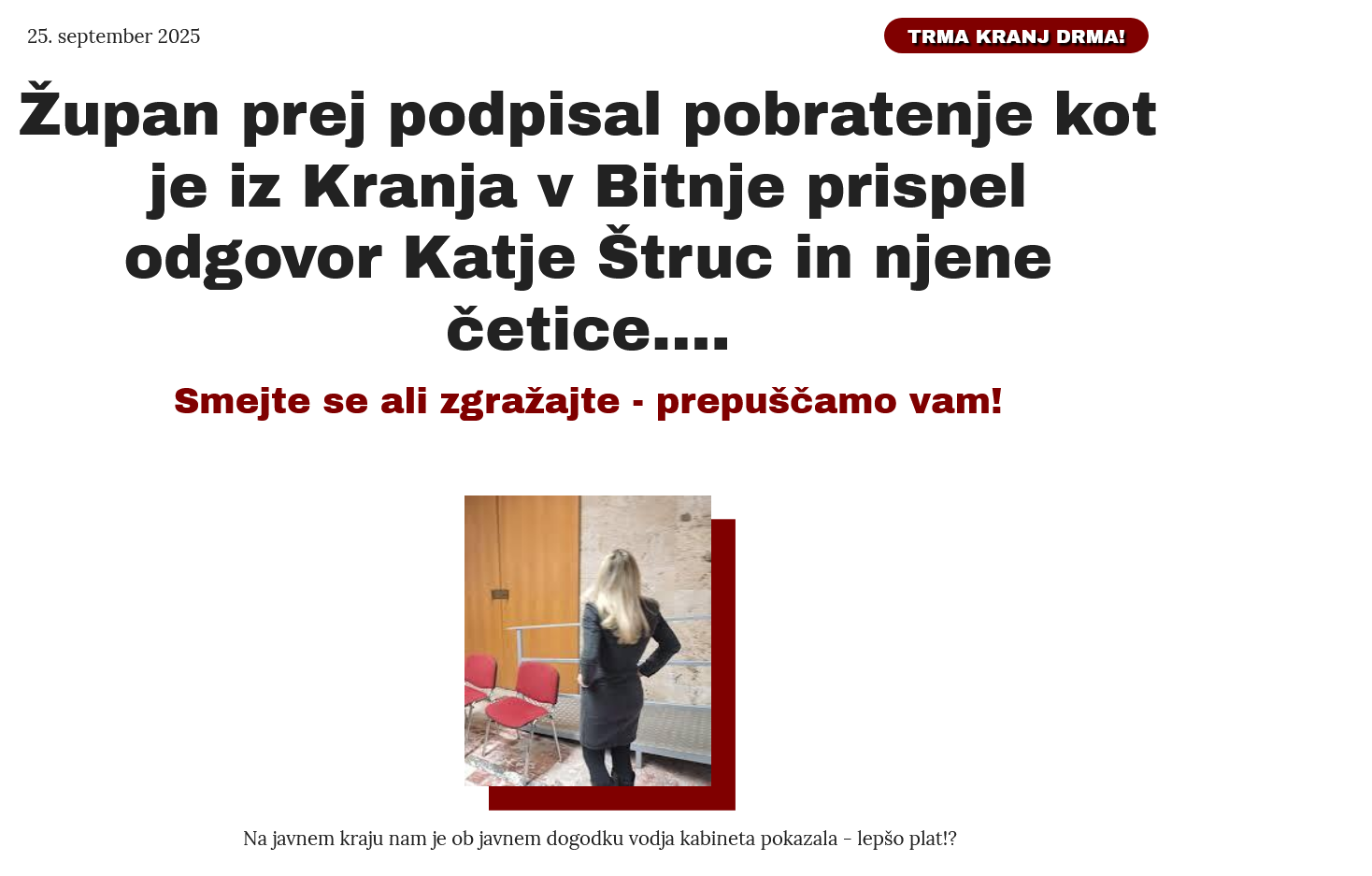 Ko smo opozorili na zakonsko neustrezen popravek, ki nam ga je poslala ena od najvišje pozicioniranih uradnic MO Kranj, Katja Štruc, nismo niti slutili, da je sporočilo tako učinkovito delovalo.....