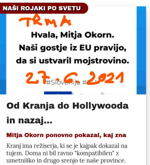 27. junij 2021Trma Kranj drma! Česa smo veseli? Odziva naših bralk, bralcev... Česa nismo veseli? Take "vsebine".. Prispelo danes na Trmin naslov... KOMENTAR NI POTREBEN....