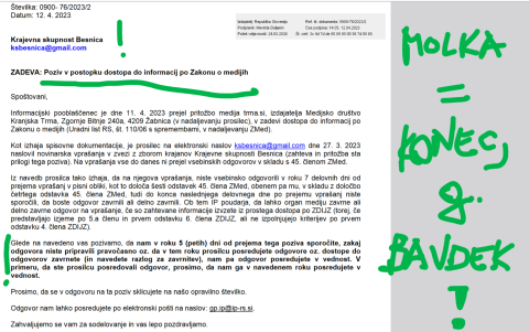 Predsednik sveta KS Besnica je Primož Bavdek, ki se v zgodbi "dvorana pod Joštom" v javnosti skoraj ni pojavil. Pač pa se je predsednica turističnega društba Živa Slavec in - kraj je stopil za njo, ne za Bavdka. Ko smo ga vprašali o sklicu zbora krajanov, se je "potuhnil". A za take je država pripravila predpis in tako je na zahtevo informacijske pooblaščenke odgovoril kot smo tudi napovedali...