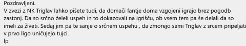 Tadej Peranovič je kot direktor javnega zavoda napisal tole sporočilo Trma.si:
