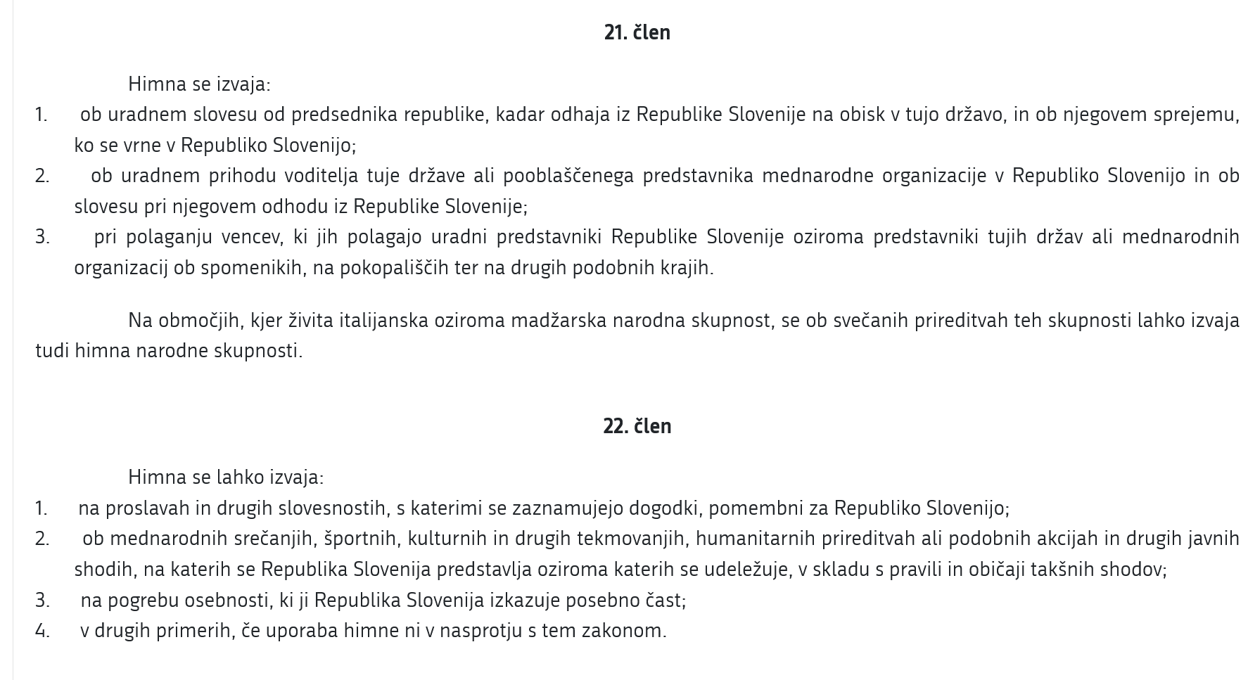 TAKOLE PA O PREDVAJANJU HIMNE PIŠE V ZAKONU....