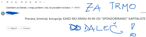 Nismo preverjali identitete in pošiljatelja. Nismo si delali in si ne delamo utvar, a nekaj je gotovo: TAKE IN PODOBNE PONUDBE PREJEMAMO, KER ALGORITMI IPD. SODOBNE POTI DO ZAZNAVANJA BRANOSTI IPD. MELJEJO PO SVOJE - IN MELJEJO TUDI NAŠO TRMO. Prijazno smo odgovorili, da naše vsebine niso opremljene z reklamnimi sporočili. Trmo "preživljamo" iz lastnih žepov od začetka do danes: nimamo zaslužkov, stroške pa pokrijemo sami, delamo prostovoljno. Zato smo taki kot smo: nič boljši, nič slabši. PONUDBE TE VRSTE PA NAM GODIJO, KER NAS ZAZNAVAJO.....IN PRIZNAVAJO!