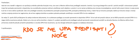 Državni načrtovalci usod ljudi na Orehku delujejo pod vodstvom Kranjčanke, ministrice ALENKE BRATUŠEK. Vsem njim bo Trma.si ŠE DANES ZASTAVILA VPRAŠANJA, KI BODO RAZGALILA, KAKO SE USOD DRŽAVLJANOV LOTEVA DRŽAVA. Na primeru, ki vas bo osupnil, se sesuje verodostojnost inženirjev in politikov. MIMOGREDE: KAKŠEN ODGOVOR PA NAM DOLGUJETA MATJAŽ RAKOVEC&JANEZ ČERNE? Preberite....poslano na občino....31.3.2023.....in jutri je zadnji dan, ko po zakonu morajo odgovoriti!