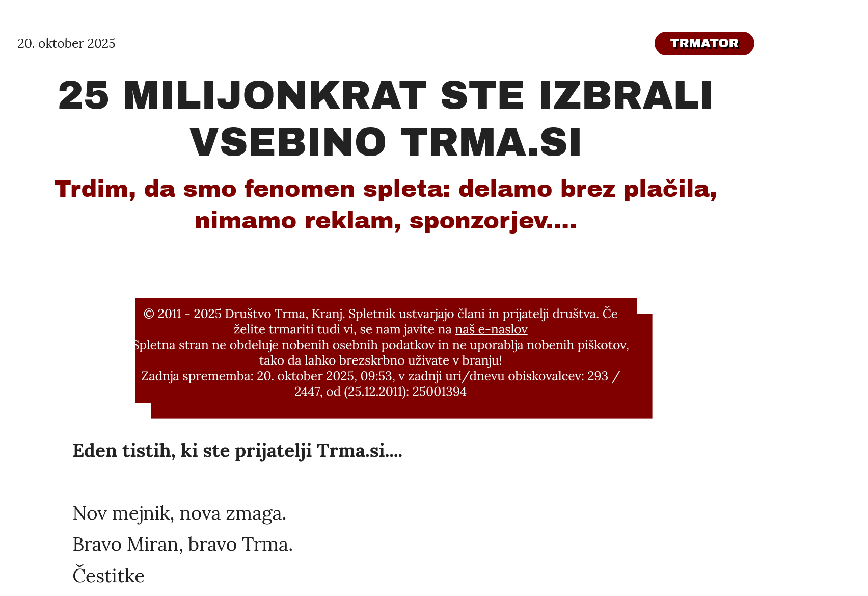 Smo medijski fenomen v Sloveniji in širše, ker vse stroške objav ipd. nosimo sami, Trmo pa pišemo prostovoljci.