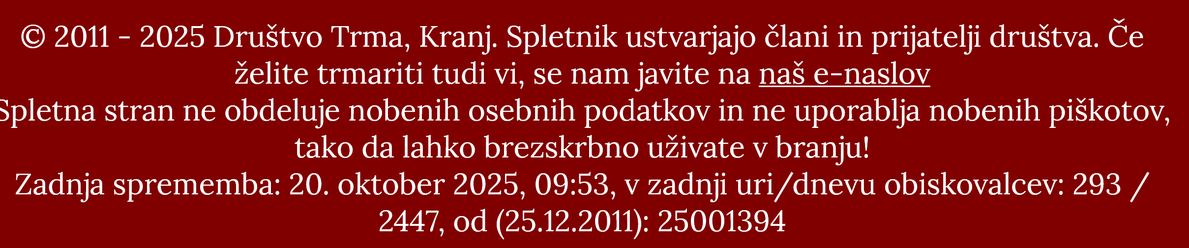 VSE JE ODVISNO OD TISTIH, KI BERETE TRMO. ČE JO OBIŠČETE, ČE PREBERETE, JE TO ZNAK ZA NAS: DELAMO, OBJAVLJAMO, SPOROČAMO TAKO, DA LJUDJE BEREJO. SO BRALI. BODO BRALI? NE VEM, STAR SEM 67 LET S HUDO DIAGNOZO. TO SO DEJSTVA, KI SE JIH NE DA ZAOBITI ALI ZANEMARITI. VSAK DAN, KO TRMATORJI ZMOREMO KAKO OBJAVO, JE ZMAGOVALEN. IN MI Z NJIM.