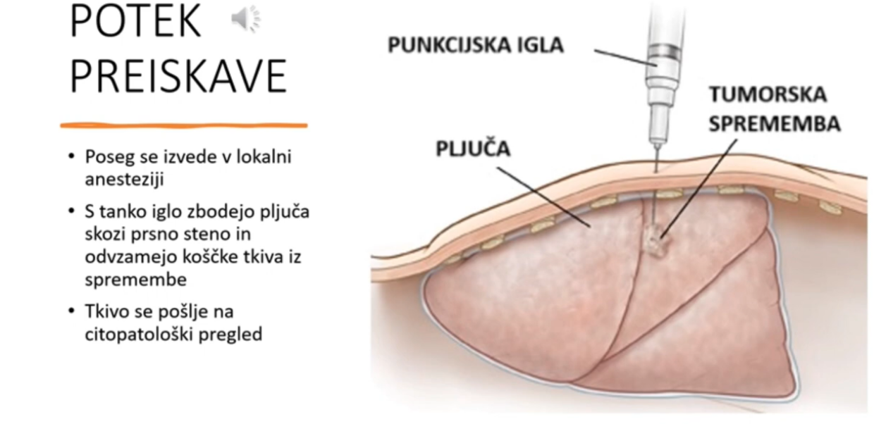 Je mogoče biti navdušen, ko ti v pljučih preiskujejo raka? Je. Jaz sem bil. Ne nad tem, da je treba potrditi ali ovreči sume, nad preiskavo samo. Gre za res izjemno doživetje: zopet si na sloviti mizi, ki drsi gor in dol v tunel in iz njega. Pa te slikajo in potem nastopi ekipa, ki ti v pljuča spusti "sondo" oziroma iskalnik oziroma iglo, ki pomaga pri analizi dogajanja... Ne bom pisal več, da se strokovnjaki ne bi zgražali, bil sem pa osupel: kaj vse zmore naša medicina, kakšno znanje imajo ljudje, ki morajo iz nekaj milimentrov velike sledi vzeti celice, ki jih potem preiščejo drugi strokovnjaki na Golniku, v laboratoriju!? Prejel sem lokalno narkozo, a dejansko spremljal celotno preiskavo, ki je nov korak na poti k (o)zdravljenju....