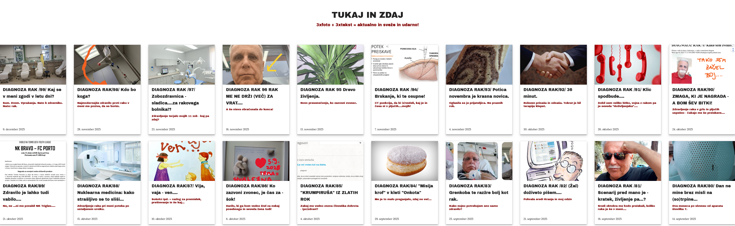 Včeraj mi je prijatelj prinesel kruh sreče in odrezal sem si ga prvič v življenju. Nisem poznal tega običaja, priznam brez oklevanja in nič osramočen. Tisti, ki mi ga je prinesel, je vse leto z mano bojeval bitko z rakom in jo še in jo še bo. To je bil nekakšen vrh vsega kar me je dobrega doletelo to leto: odziv prijateljev in neznancev me je zdravil tako kot žarki pri obsevanju ali kemoterapija v žilah. Ali pa še bolj. Čeprav živiva narazen, sva z vsakim srečanjem bolj povezana. Eno samo srce ga je in naj vam priznam: mehka duša je, da še sam postanem nekako mehak, ranljiv, otožen. Oba sva novinarja, to ostane do smrti. Ko sva se poslovila, ni bilo treba velikih besed. Meni je ostal kruh sreče, ki naj bi mi prinesel....no, saj mi je že: nekaj človeškega, nekaj toplega. Hvala ti, prijatelj - kot velja hvala vsem za vsako spodbudo, željo, gesto...za nešteta darila, polna simbolike: srečni kamen pa roža pa umetniška stvaritev pa...ne znam našteti in nočem razvrščati in preštevati. Kruh sreče je bil samo epilog tega obdobja, ko me je življenje preizkušalo kot še nikoli. S trmo sem o(b)stal do danes, da lahko z mojo družino praznujem nekaj kar je več od praznika, več od običaja, več od....vsega!