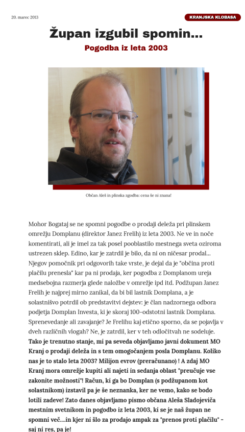 2. maj 2021Tukaj in zdaj Trma ni pozabila: danes kupujejo bogati Domplan, toda... Plinovodno omrežje v njihove roke zaradi Mohorja Bogataja? Nekadnjemu županu zaradi škode Kranju ni padel las z glave...