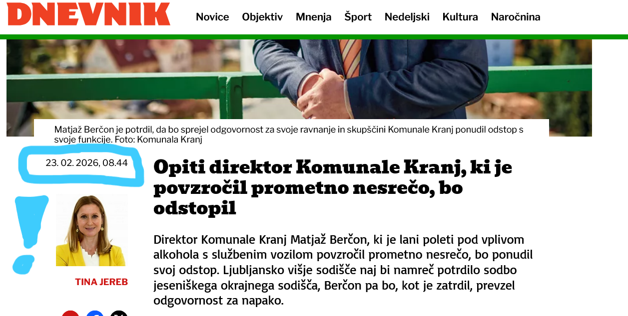 Trma.si je dne 22.2. 2026 objavila zgodbo in sicer zvečer, prilagamo dokaz.